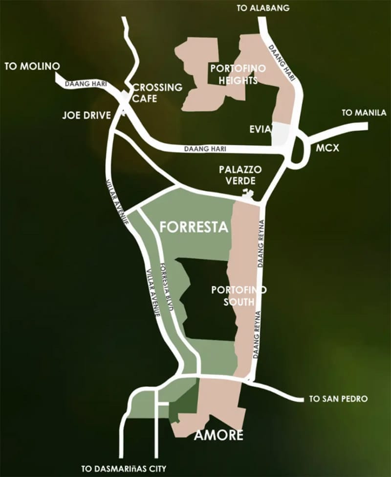 Forresta is strategically located within Villar City, Metro Manila’s southern gateway to growth and innovation. Its address along Daang Reyna places you within minutes of the city’s most important commercial and lifestyle centers, while still feeling miles away from it all.