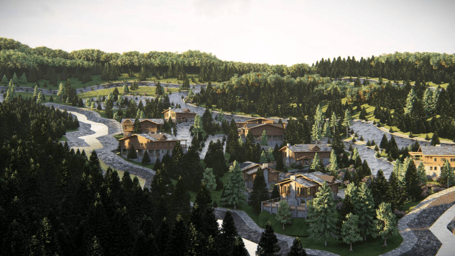The site layout ensures that each lot enjoys either direct view corridors or full immersion in pine-forested greenery.
