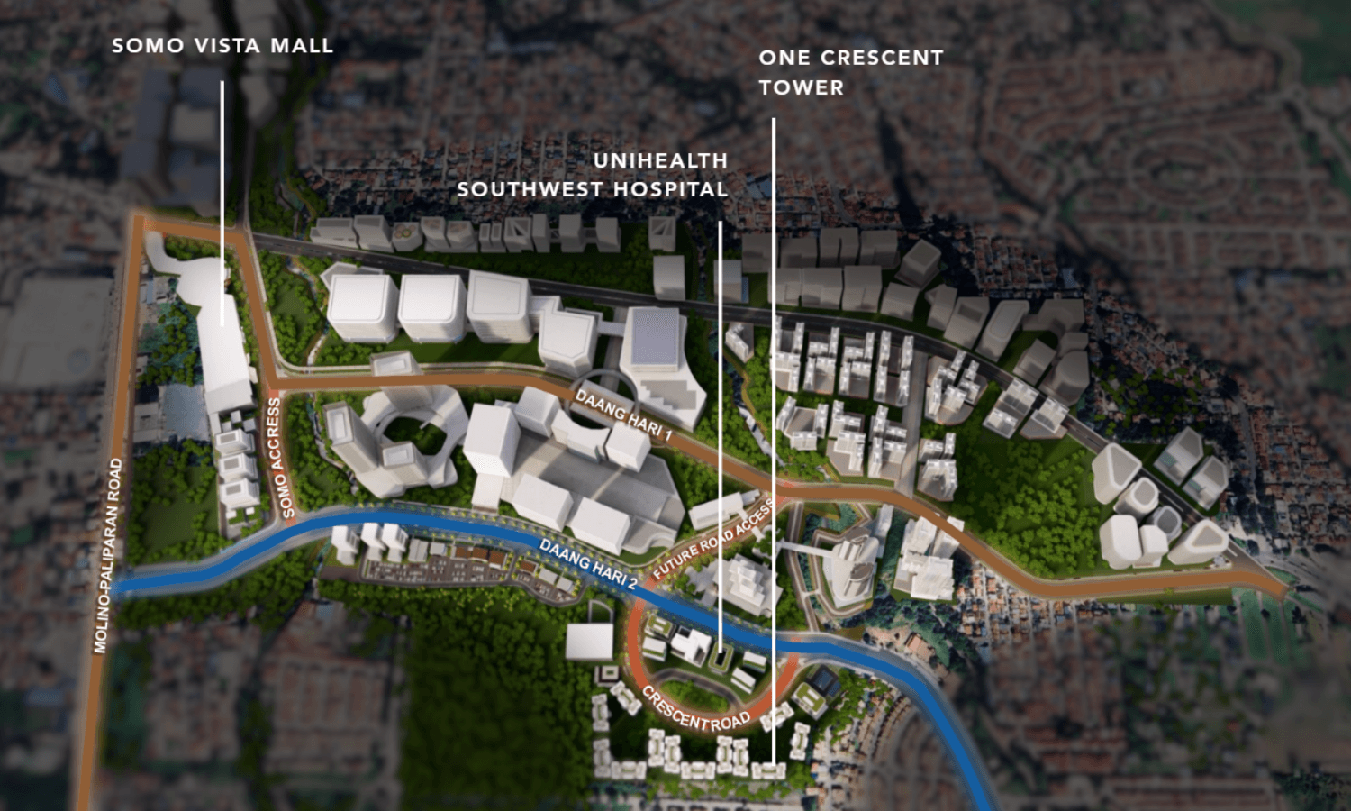 One Crescent Tower is strategically nestled in the heart of Villar City along Daang Hari in Dasmariñas—right at the border of Cavite and Metro Manila. It is part of a massive 3,500-hectare master-planned estate that spans both regions, offering residents a well-integrated community with wide landscaped roads, dedicated bike lanes, and a future-ready BRT (Bus Rapid Transit) system to enhance mobility.